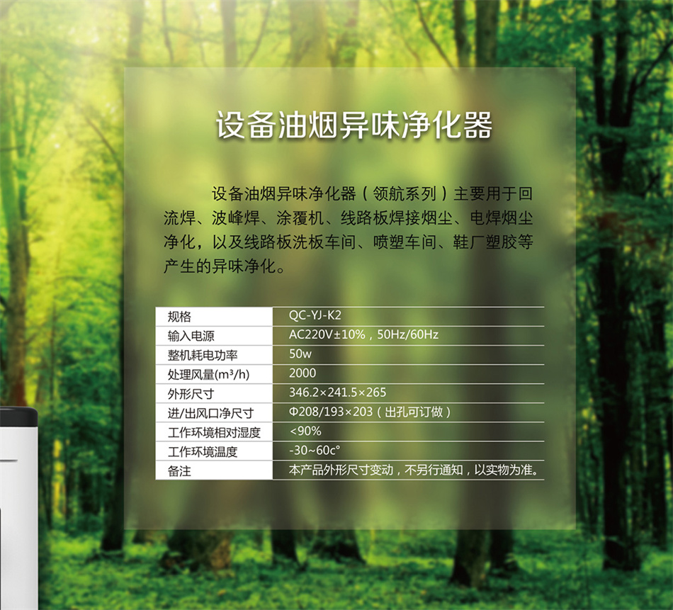 简要描述:设备油烟异味净化器(领航系列)主要用于回流焊、波峰焊、涂覆机、线路板焊接烟尘、电焊烟尘净化,以及线路板洗板车间、喷塑车间、鞋厂塑胶等产生的异味净化。